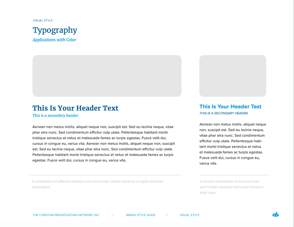 Applied the new style guide across the CBN.com platform, ensuring consistency in colors, typography, and design elements throughout the site.