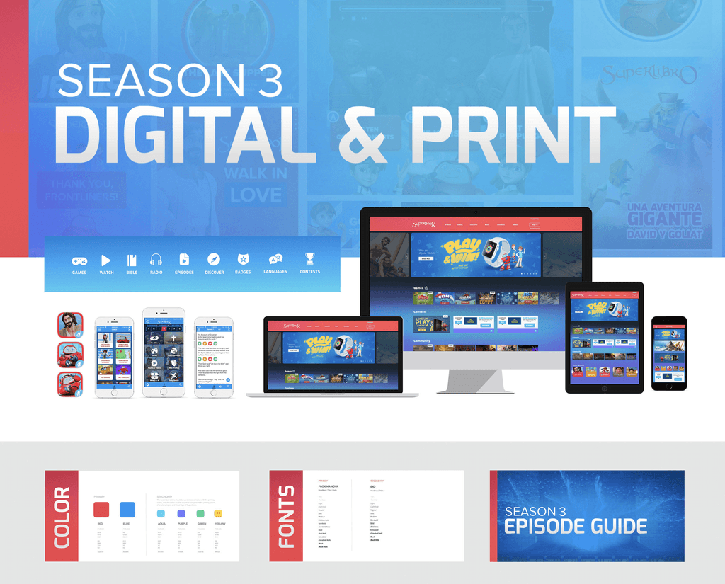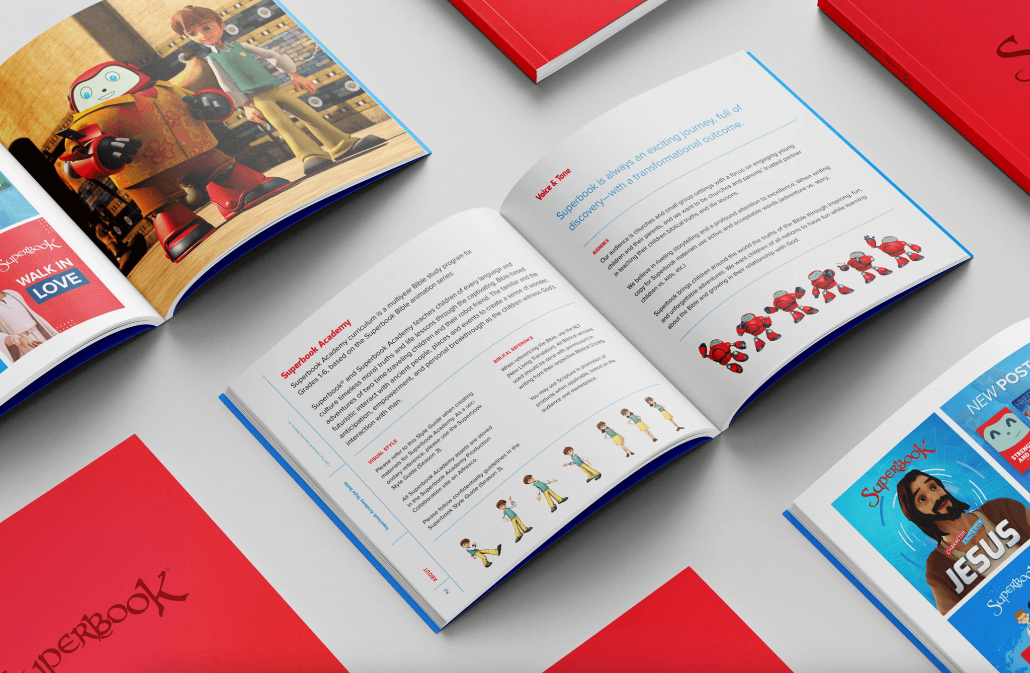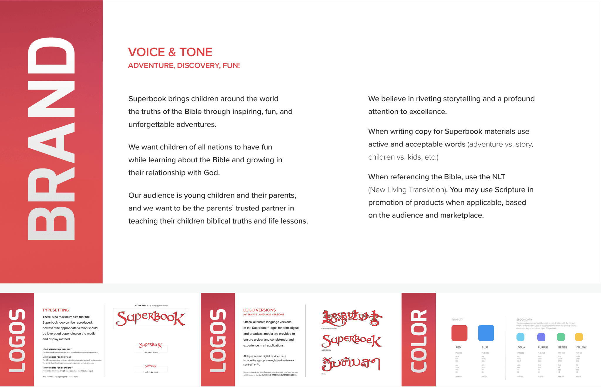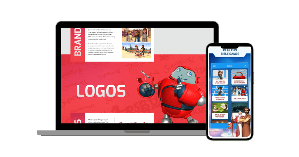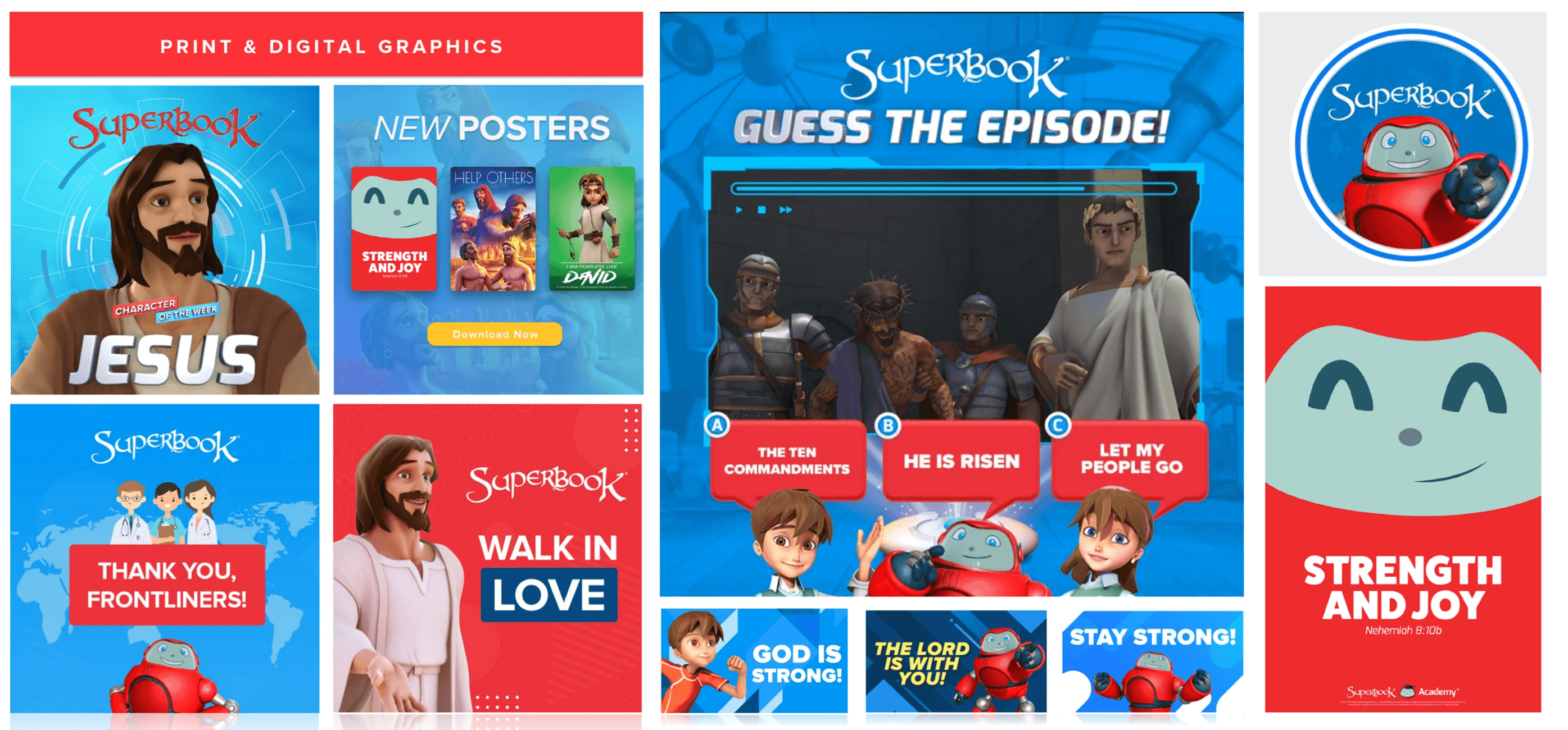 We began by developing comprehensive brand and style guides to establish visual consistency across all Superbook content. This included defining core elements like typography, color palettes, and logo usage. From there, we created episodic key art to capture the heart of each story, aligning visuals with the show’s themes and audience. For global reach, we built a flexible system for translation and localization—adapting artwork, messaging, and logo variations for over 60 languages while preserving brand integrity.