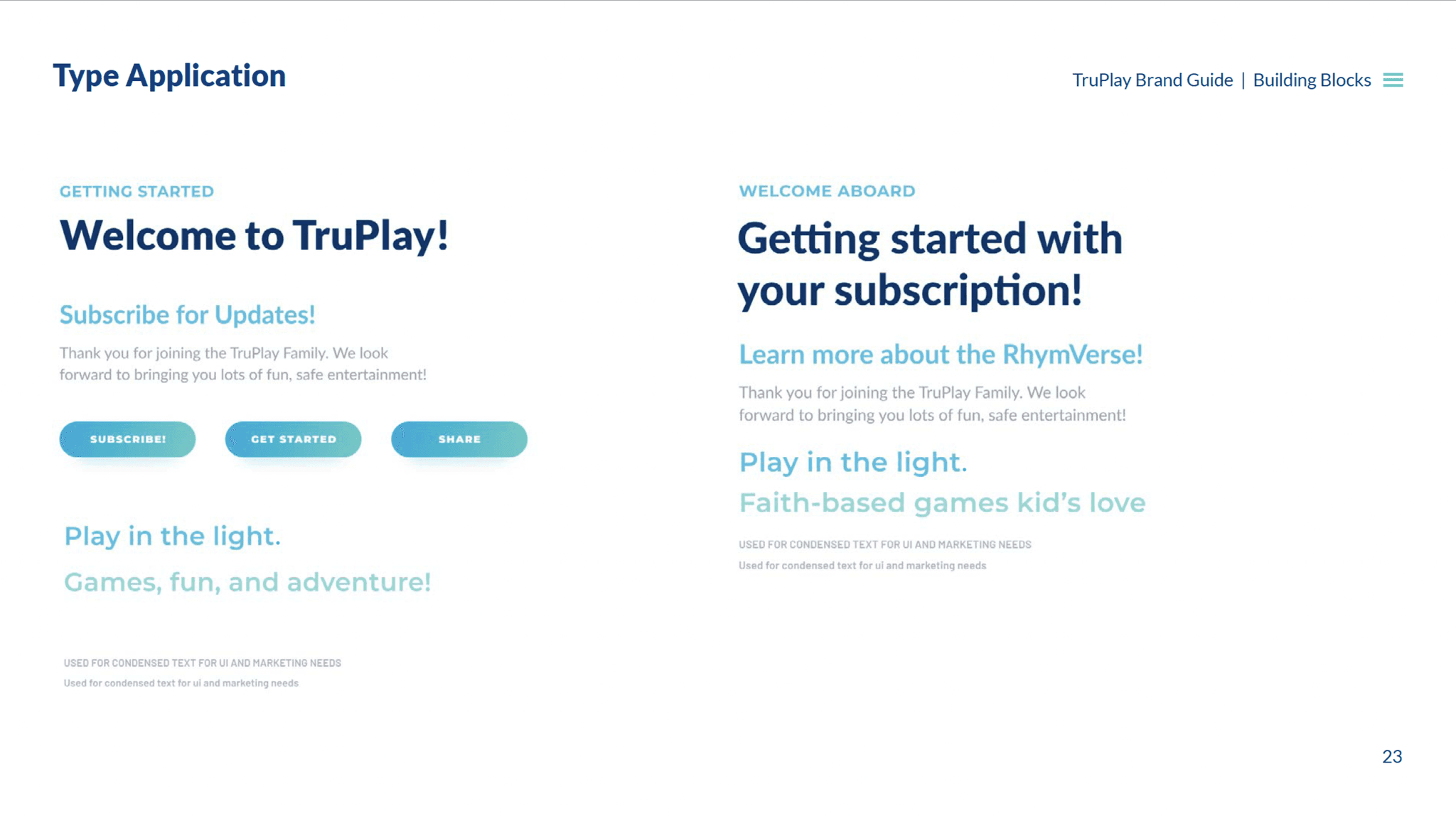 Lead Brand Designer, style guides, & creative direction for TruPlay.